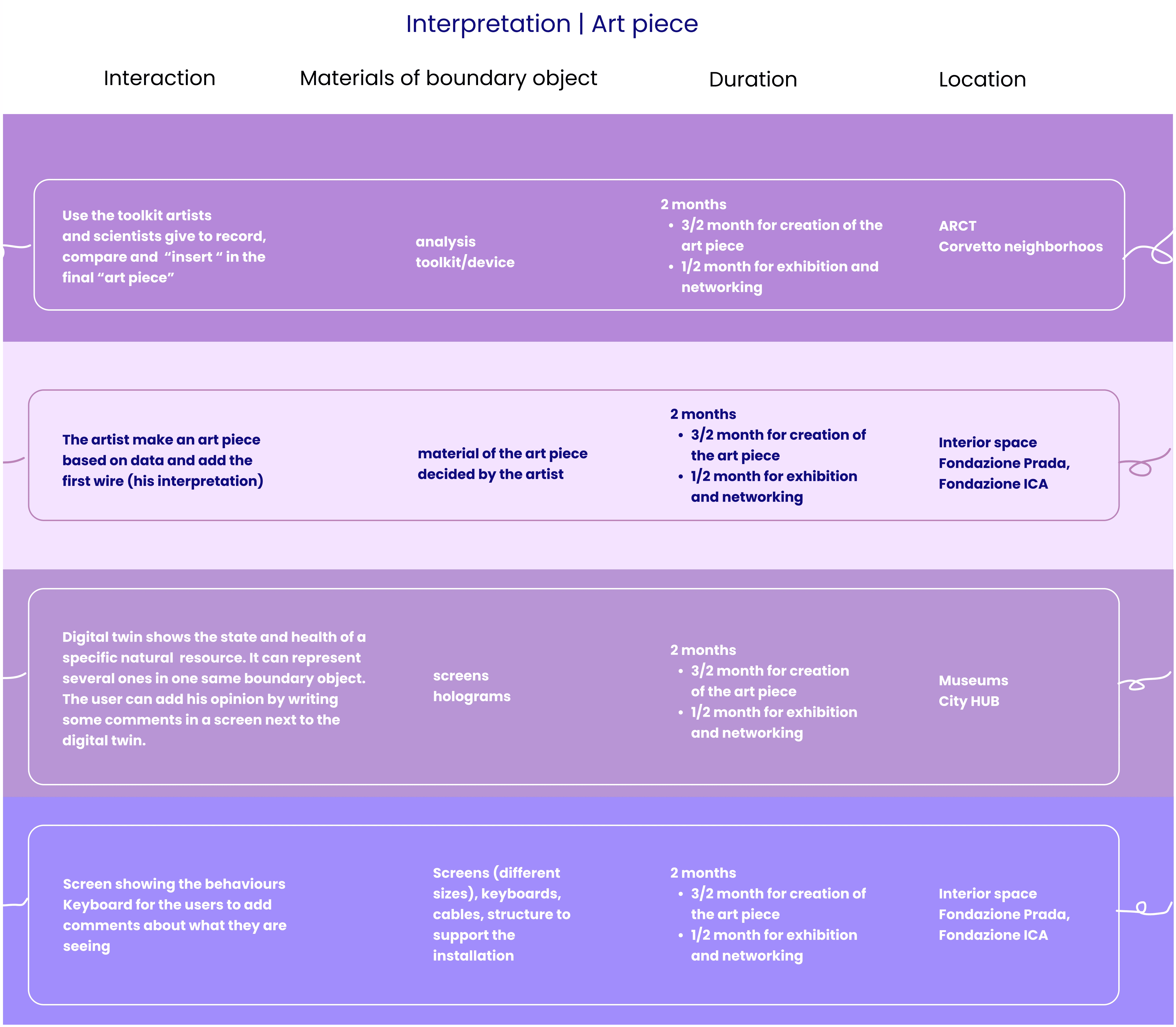 Primary and secondary / field and desk research, collecting and organizing all the insights with lateral thinking, co-design with experts, and innovators from the art residency. Promote deep and accurate development of the ideas into product-service-system solutions.